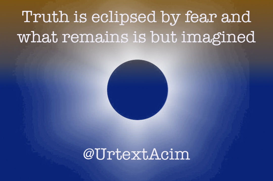 What, then, can fear project upon the world? What can be seen in darkness that is real? Truth is eclipsed by fear, and what remains is but imagined. Yet what can be real in blind imaginings of panic born? What would you want that this is shown to you? What would you wish to keep in such a dream?