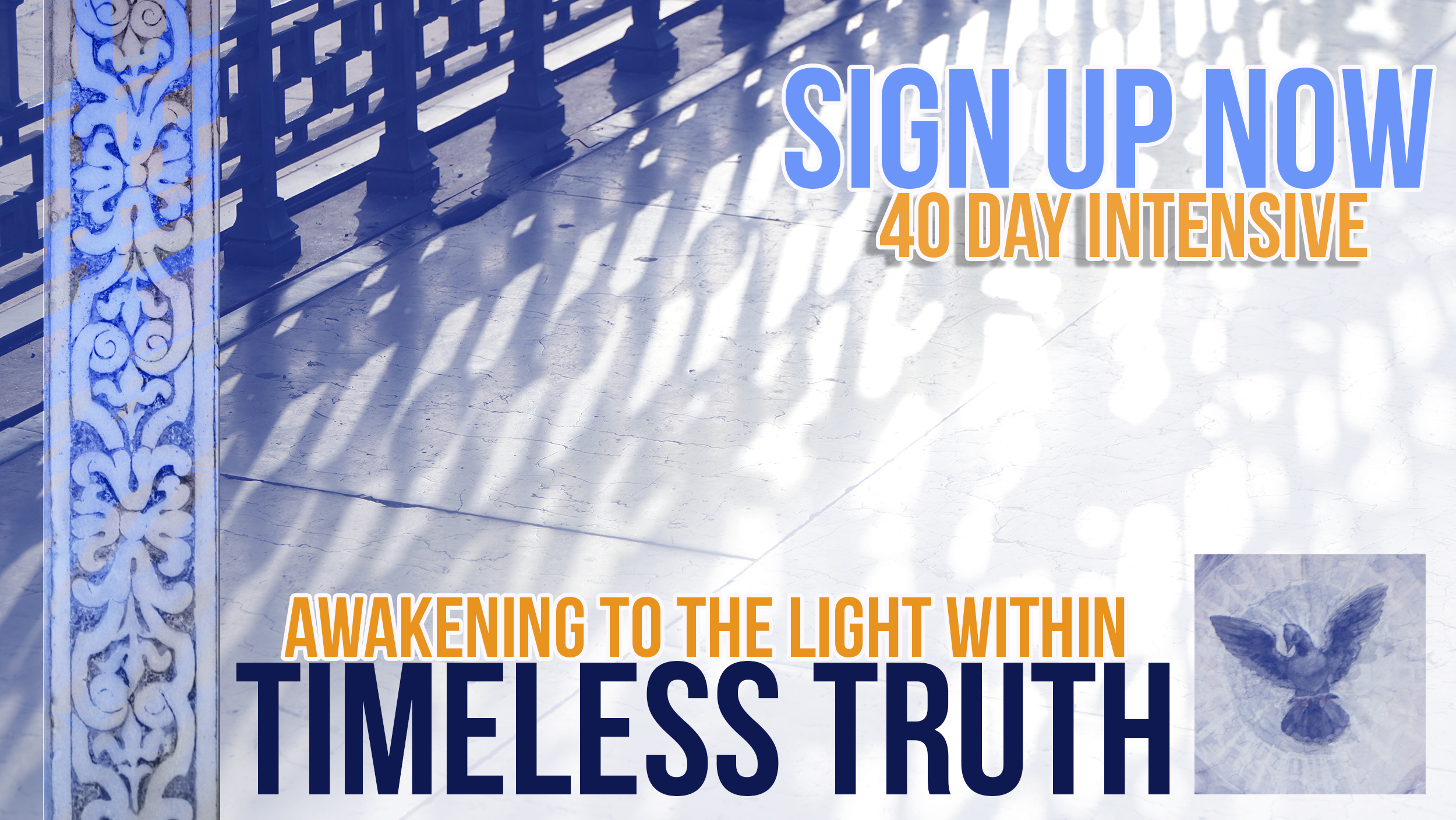 The next 40 Day Intensive is now open for you to register. The title is: “Awakening to the light within” – Timeless Truth. A 40 day intensive is a period in which you commit yourself to dedicate more time and focus to the Light within. To be on the mountain top and during your day have more moments in which you leave the world for what it is. The way this will have meaning depends on you, what is it that you want etc. In the upcoming program we focus on the Timeless Truth and will use the New Testament, Christian Mystics, Joel Goldsmith and the Urtext of A Course in Miracles.